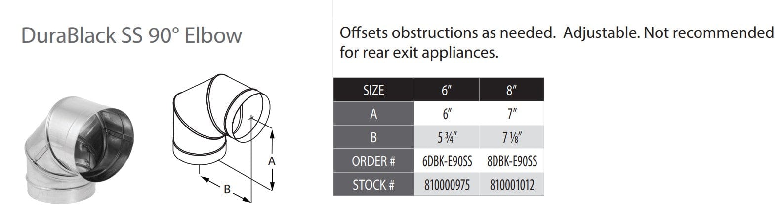 DuraVent DuraBlack 8 Inch Diameter Stainless Steel 90 Degree Black Elbow - 8DBK-E90SS