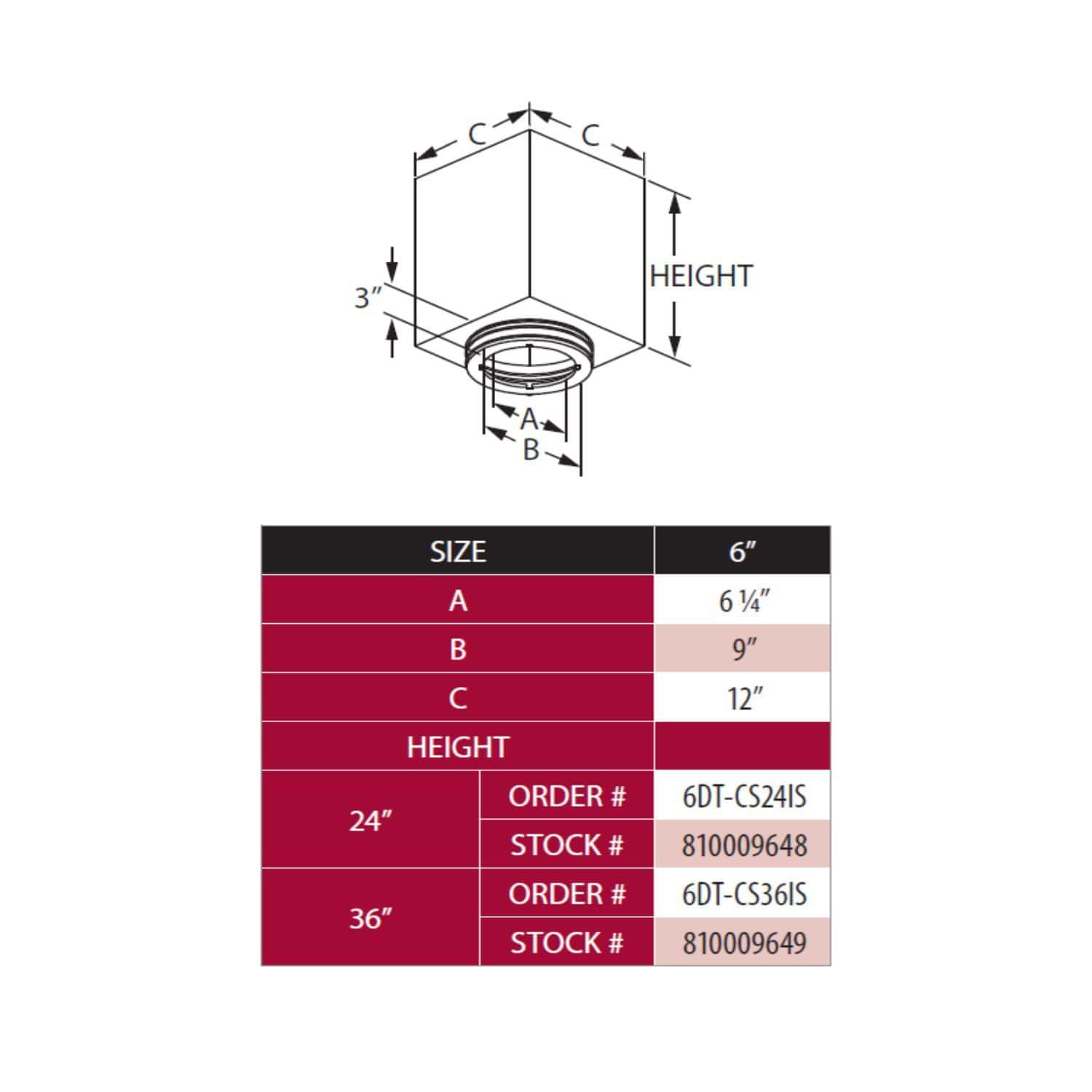 DuraVent DuraTech 6 Inch Diameter 24 Inch Square Ceiling Support Box with Attic Insulation Shield - 6DT-CS24IS
