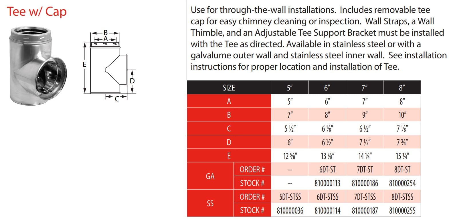 DuraVent DuraTech 8 Inch Diameter Galvanized Standard Tee with Cap - 8DT-ST
