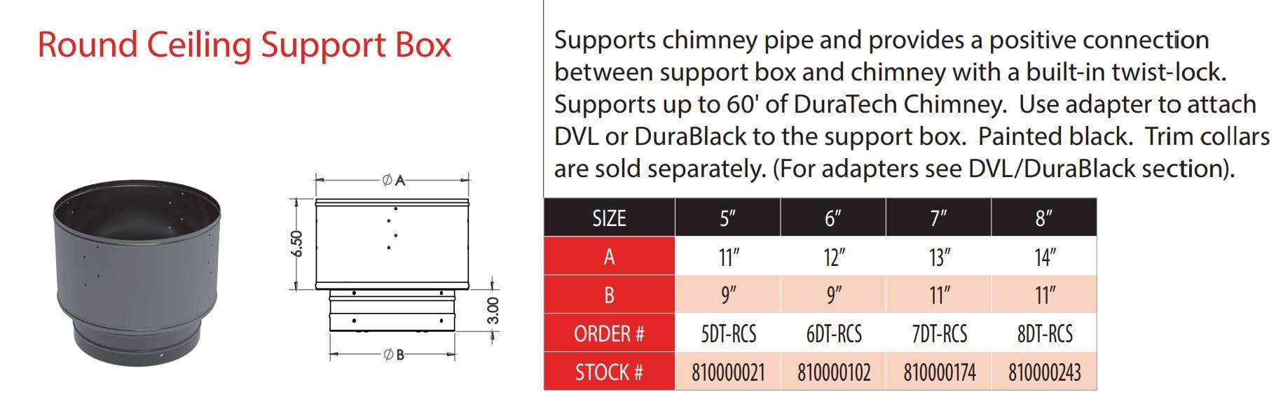 DuraVent DuraTech 8 Inch Diameter Round Ceiling Support Box - 8DT-RCS