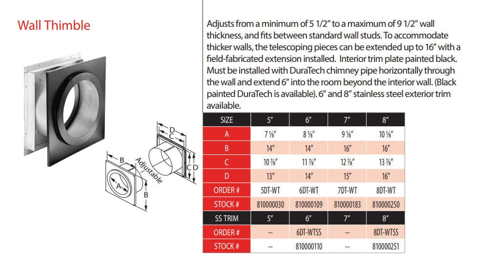 DuraVent DuraTech 8 Inch Diameter Wall Thimble - 8DT-WT