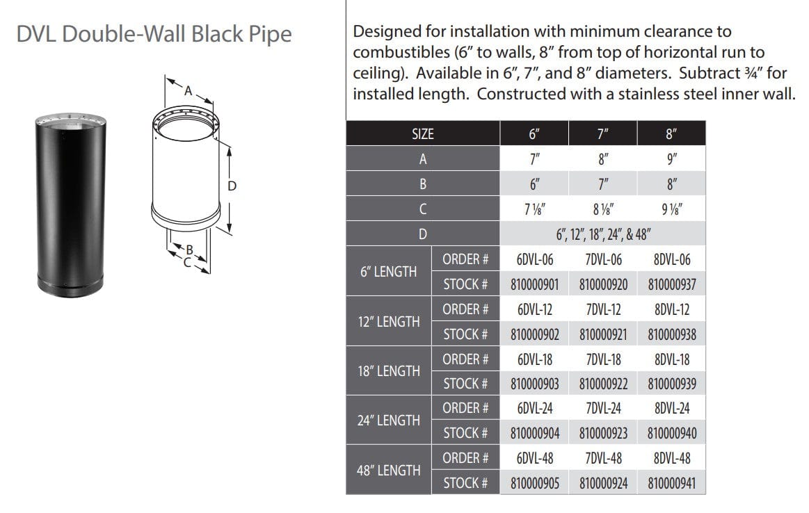 DuraVent DVL 6 Inch Diameter Double Wall Black 6 Inch Pipe Length - 6DVL-06