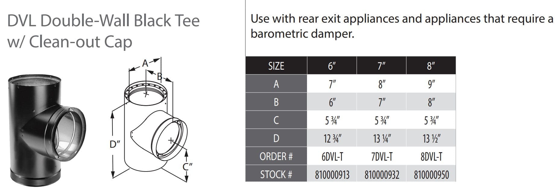 DuraVent DVL 6 Inch Diameter Double Wall Black Tee w/Clean-Out Cap - 6DVL-T