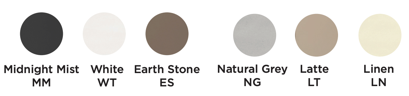 | Color | Natural Grey, Earth Stone, Linen, Latte, Midnight Mist, White |