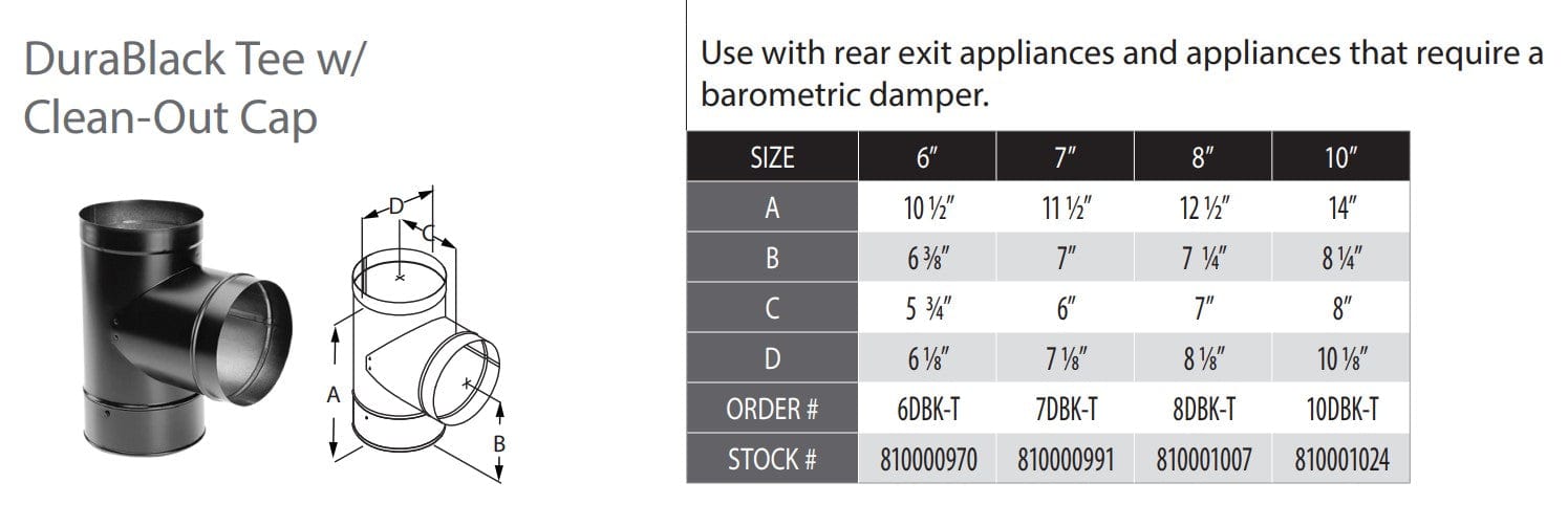 DuraVent DuraBlack 8 Inch Diameter Black Tee w/Clean-Out Cap - 8DBK-T