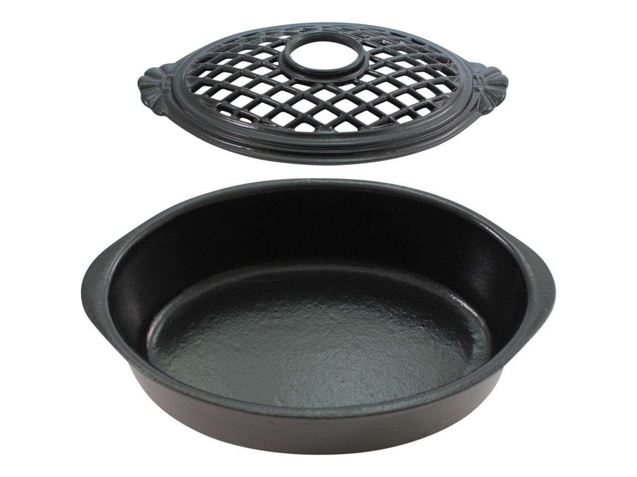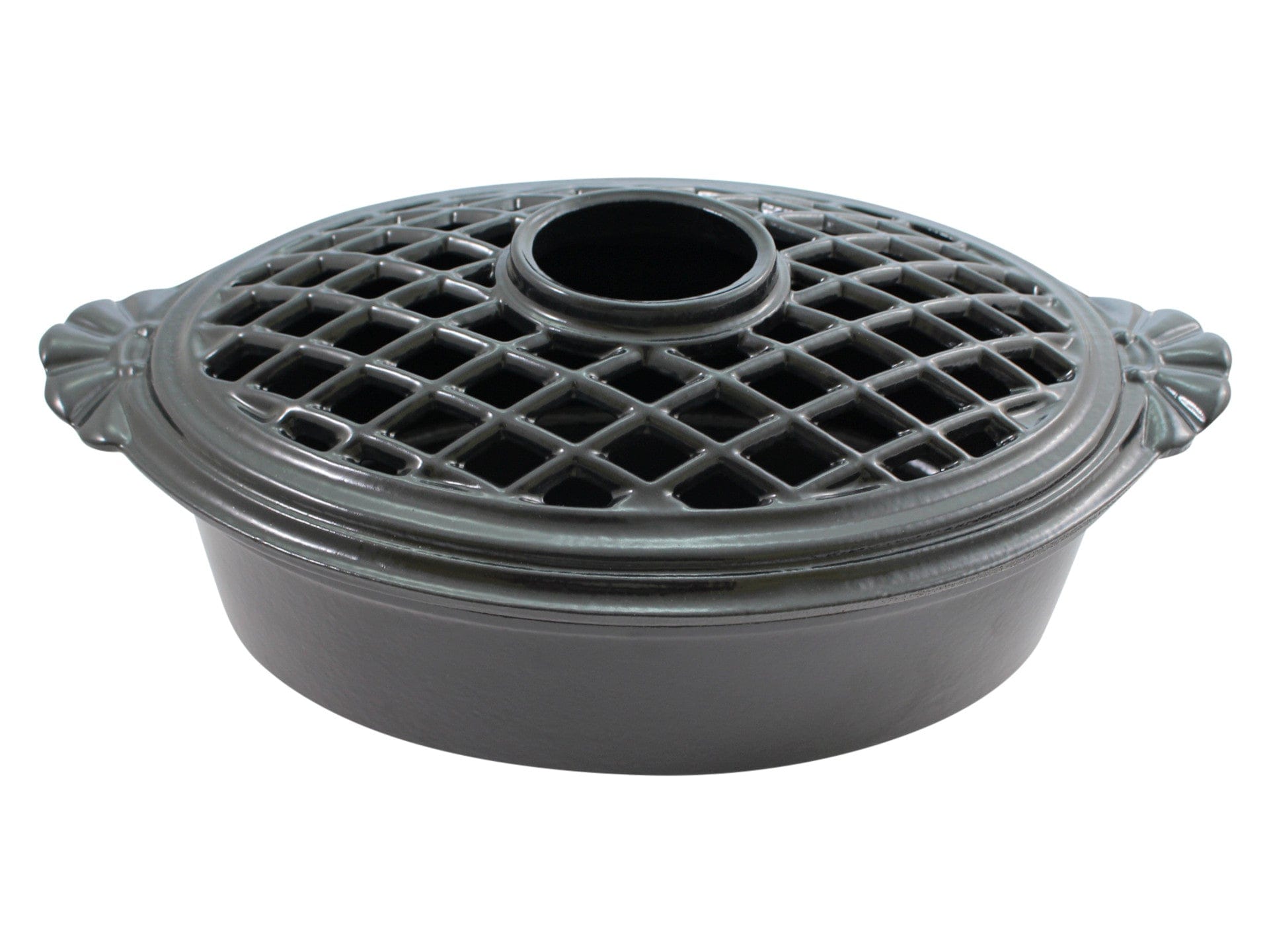 - Matching Cast Iron Lid – Decorative lid with vent holes to allow steam release