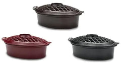 - Cast Iron Steamer Base – Heavy-duty cast iron body with enamel coating (color varies by model: Twilight, Majolica Brown, or Bordeaux)